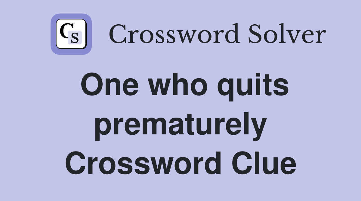 One who quits prematurely Crossword Clue Answers Crossword Solver
