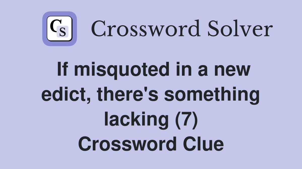 If misquoted in a new edict there #39 s something lacking (7) Crossword