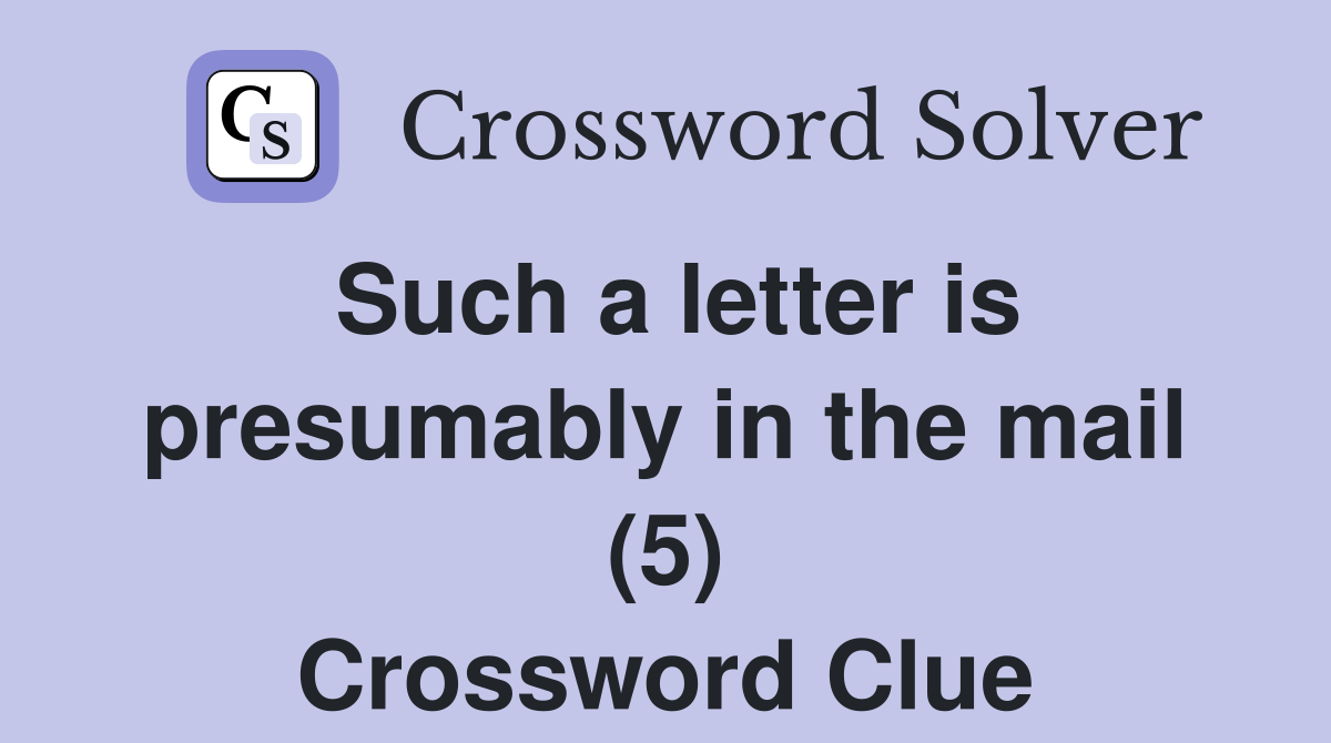 Such a letter is presumably in the mail (5) Crossword Clue Answers
