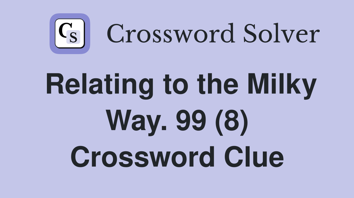 Relating to the Milky Way 99 (8) Crossword Clue Answers Crossword