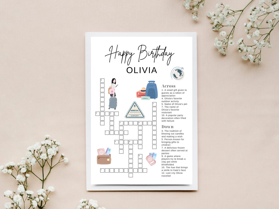 Traveler Birthday Party Crossword Puzzle Editable and Printable Small