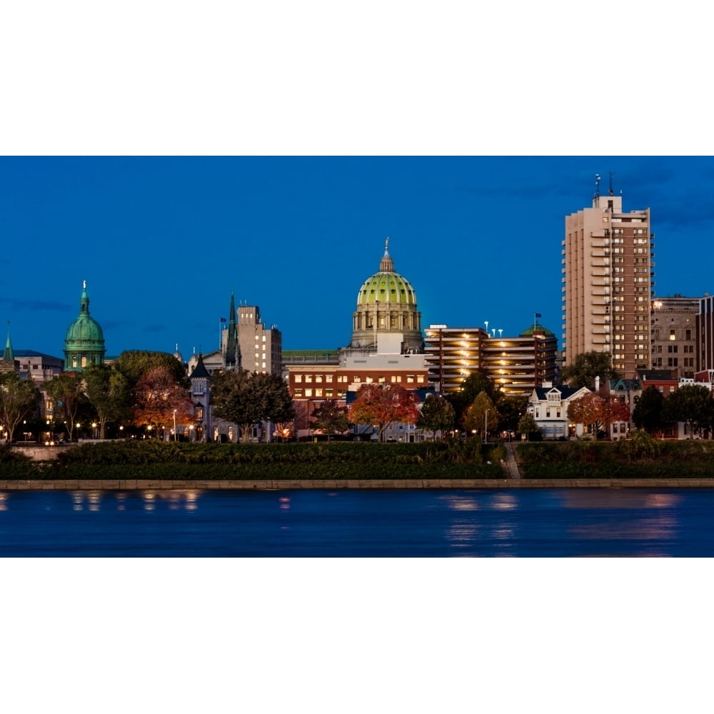 HARRISBURG PENNSYLVANIA City skyline and State Capitol shot at dusk