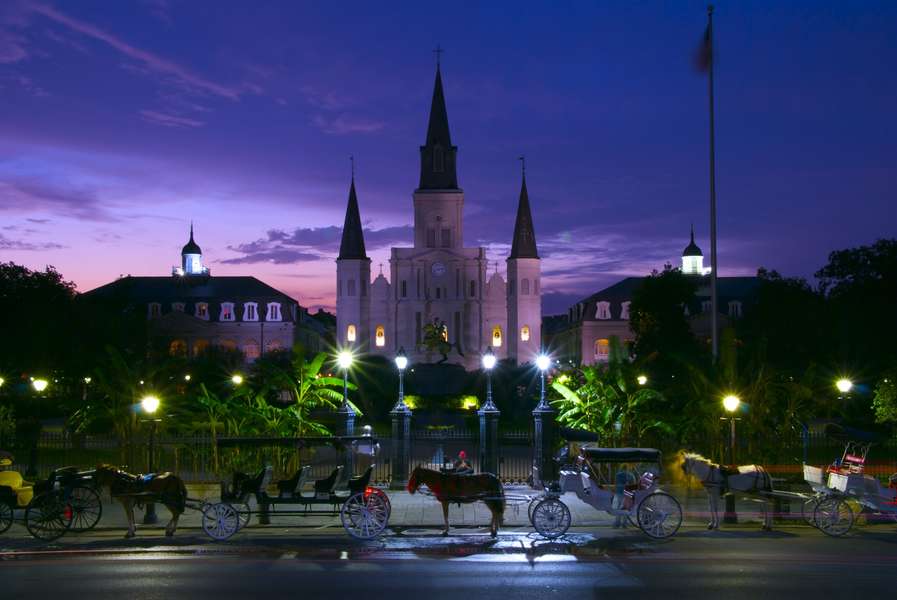 Jackson Square at night St louis cathedral New orleans homes Old church
