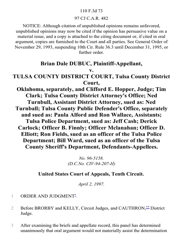 Brian Dale Dubuc v Tulsa County District Court Tulsa County District