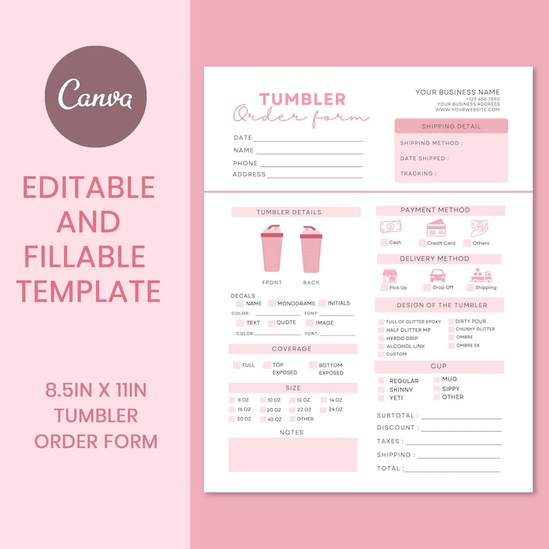 Editable Tumbler Order Form Tumbler Order Template Custom Tumbler