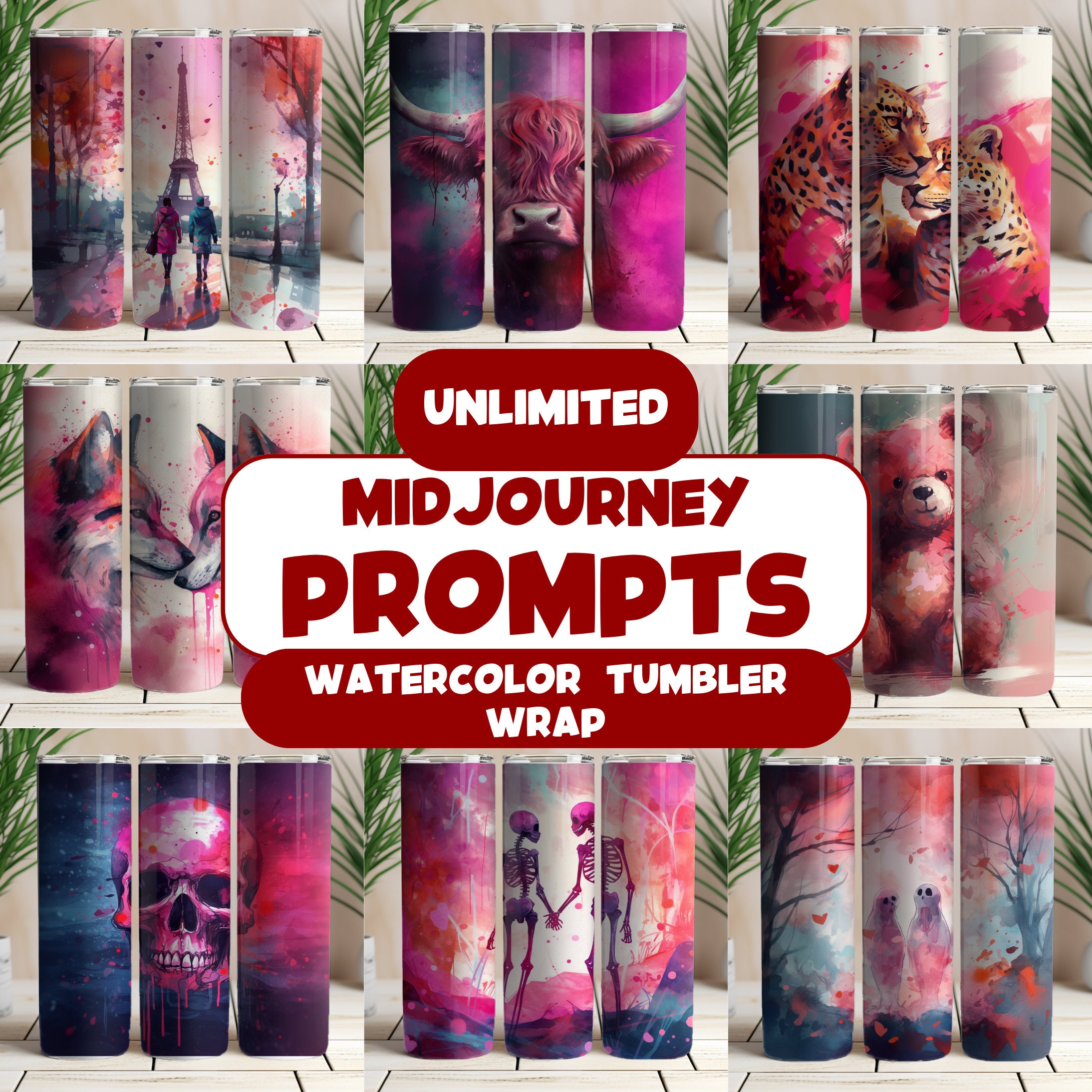 Midjourney Prompt Guide for Watercolor Tumbler Wrap Designs AI