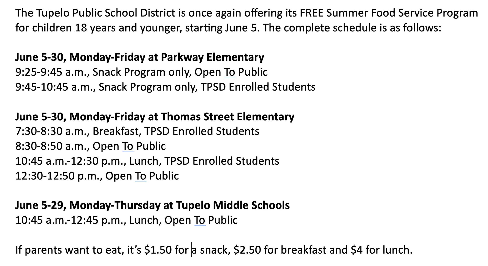 Tupelo Schools on Twitter: quot The #TPSD Summer Food Program begins on