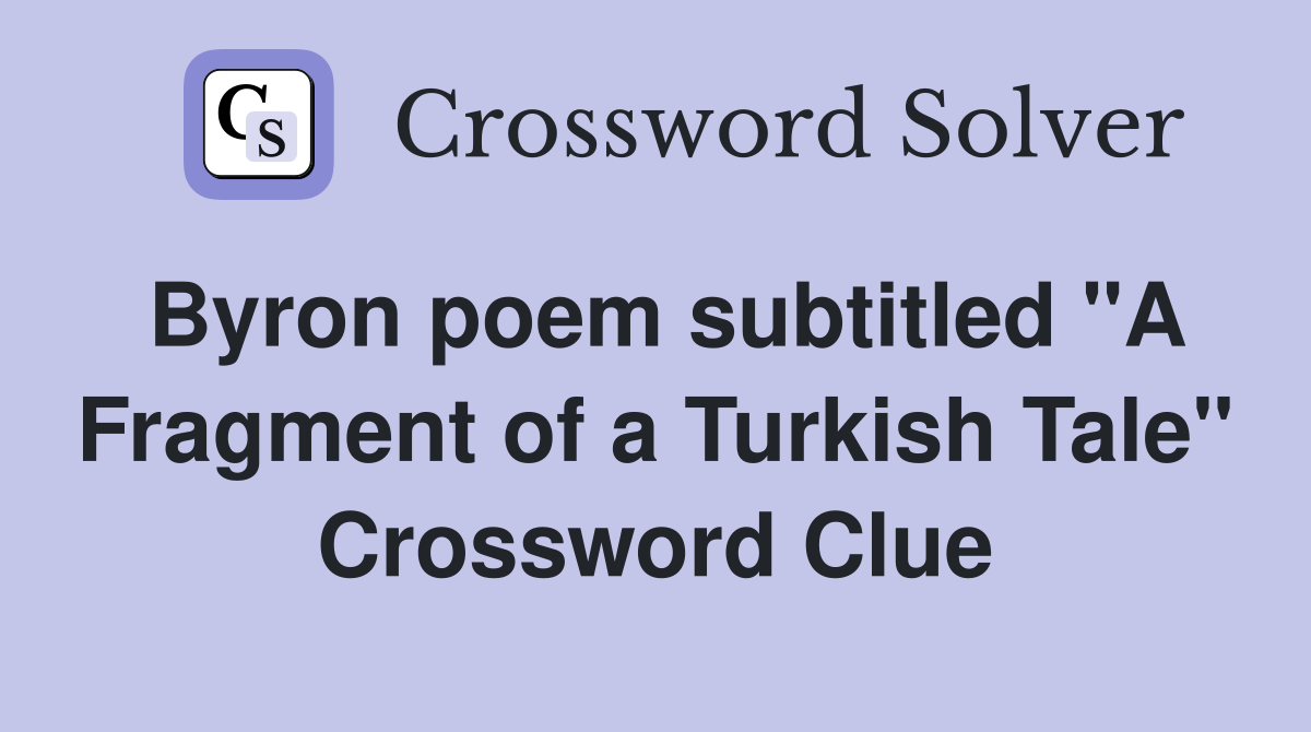 Byron poem subtitled quot A Fragment of a Turkish Tale quot Crossword Clue