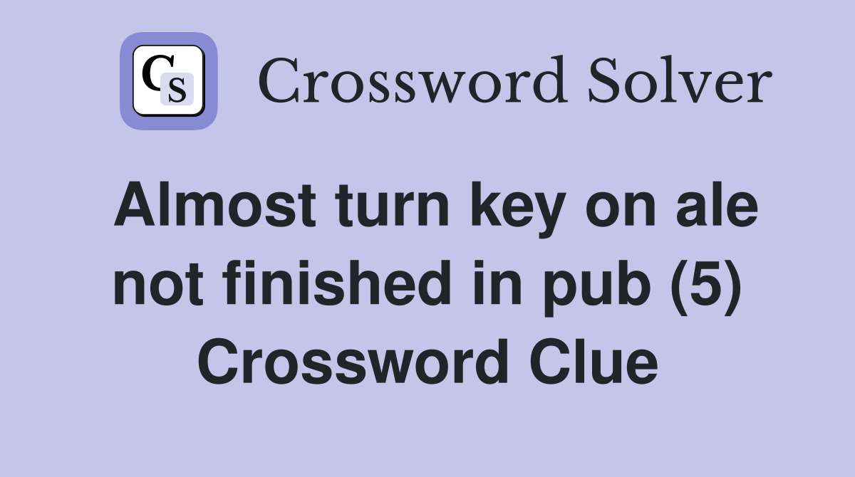Almost turn key on ale not finished in pub (5) Crossword Clue Answers