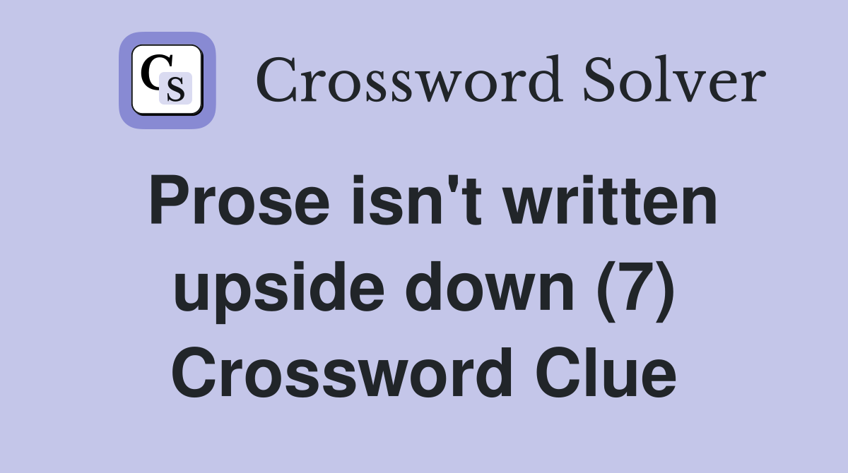 Prose isn #39 t written upside down (7) Crossword Clue Answers