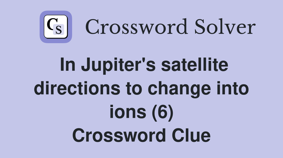 In Jupiter #39 s satellite directions to change into ions (6) Crossword