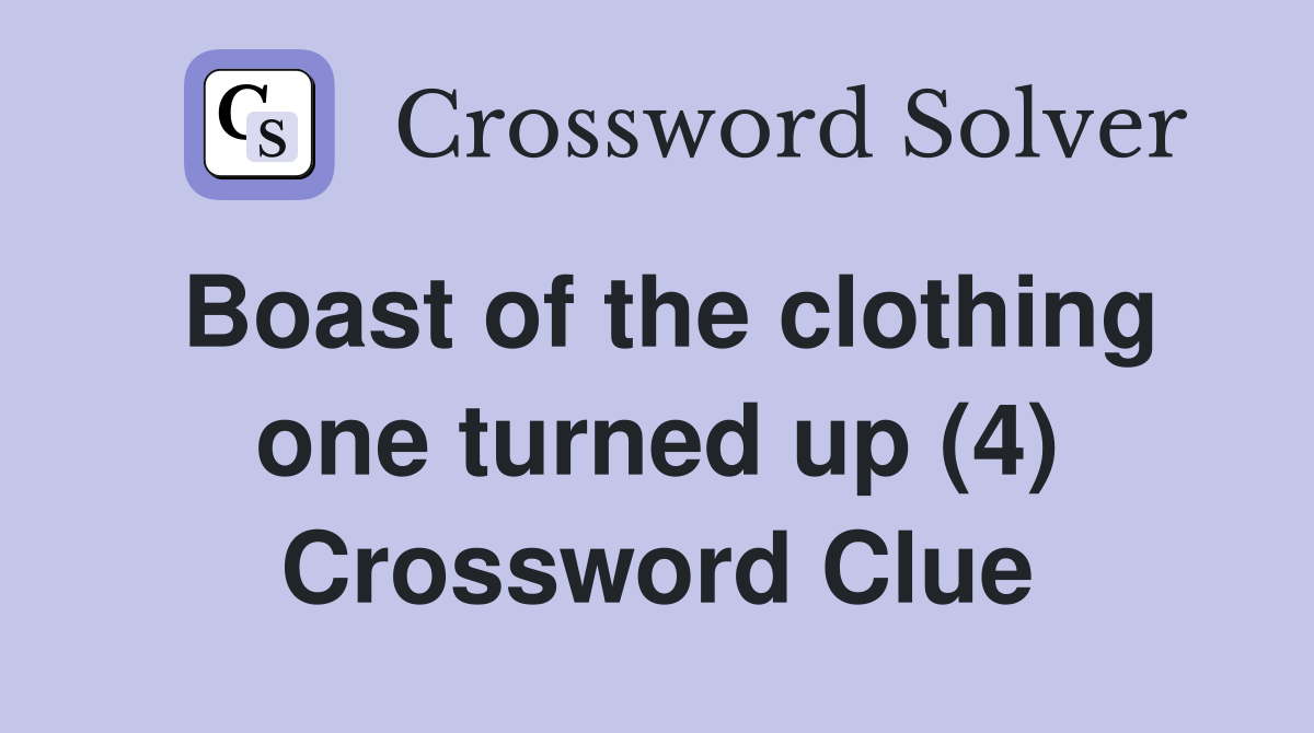 Boast of the clothing one turned up (4) Crossword Clue Answers