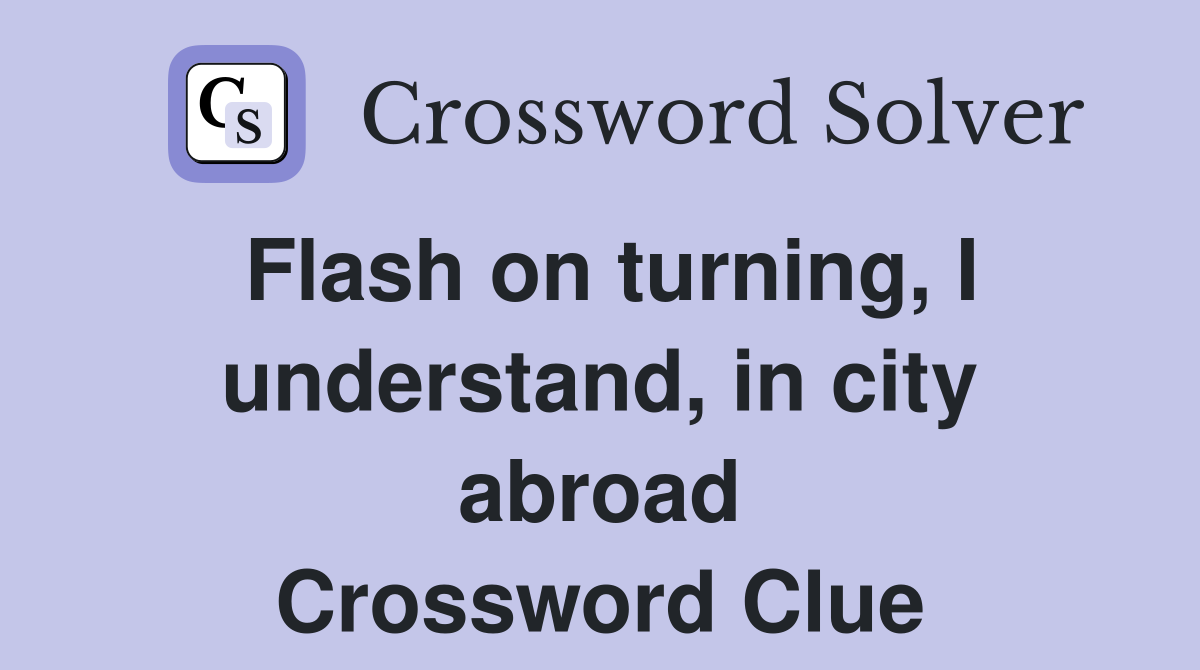 Flash on turning I understand in city abroad Crossword Clue Answers