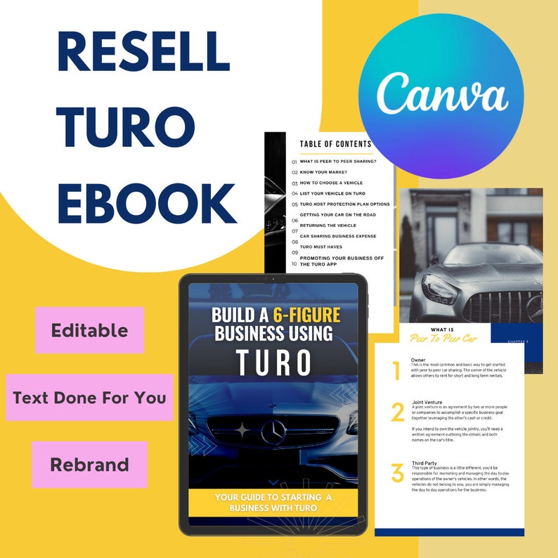Canva Editable resell Template Guidebook for Turo Ebook Passive
