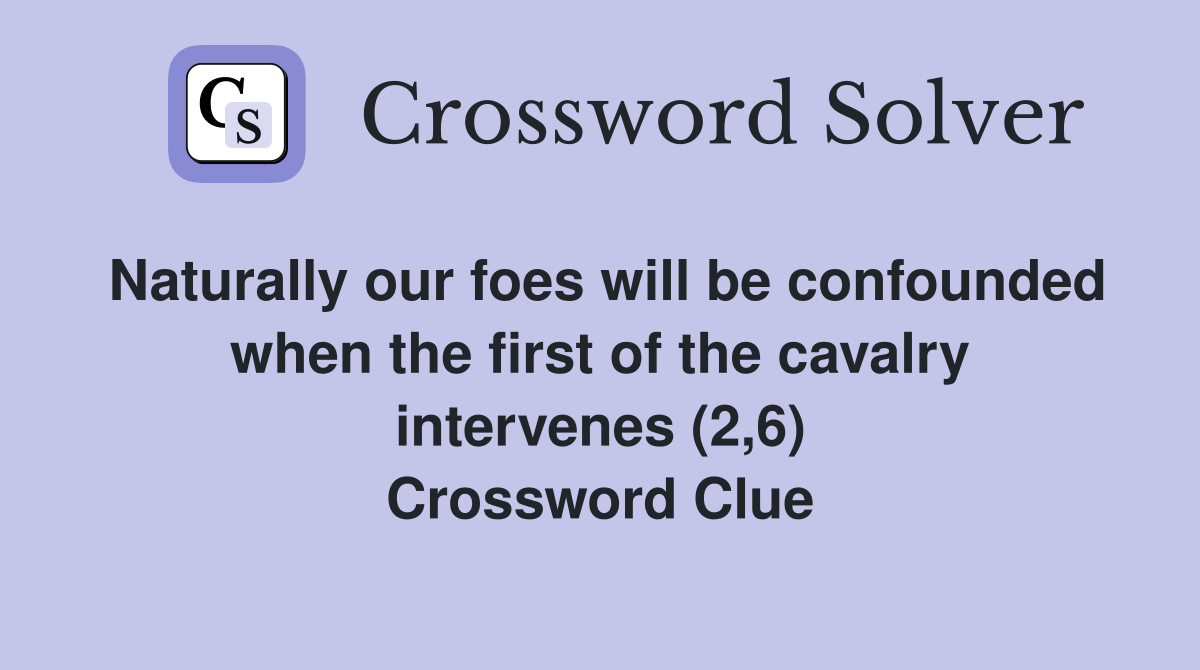 Naturally our foes will be confounded when the first of the cavalry
