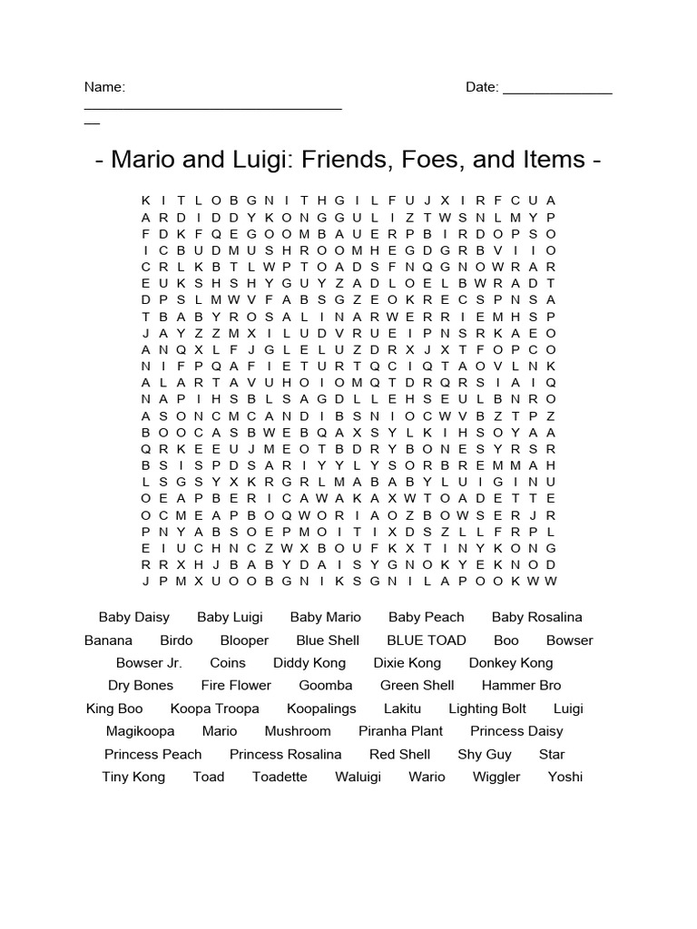 Super Mario Word Search WordMint