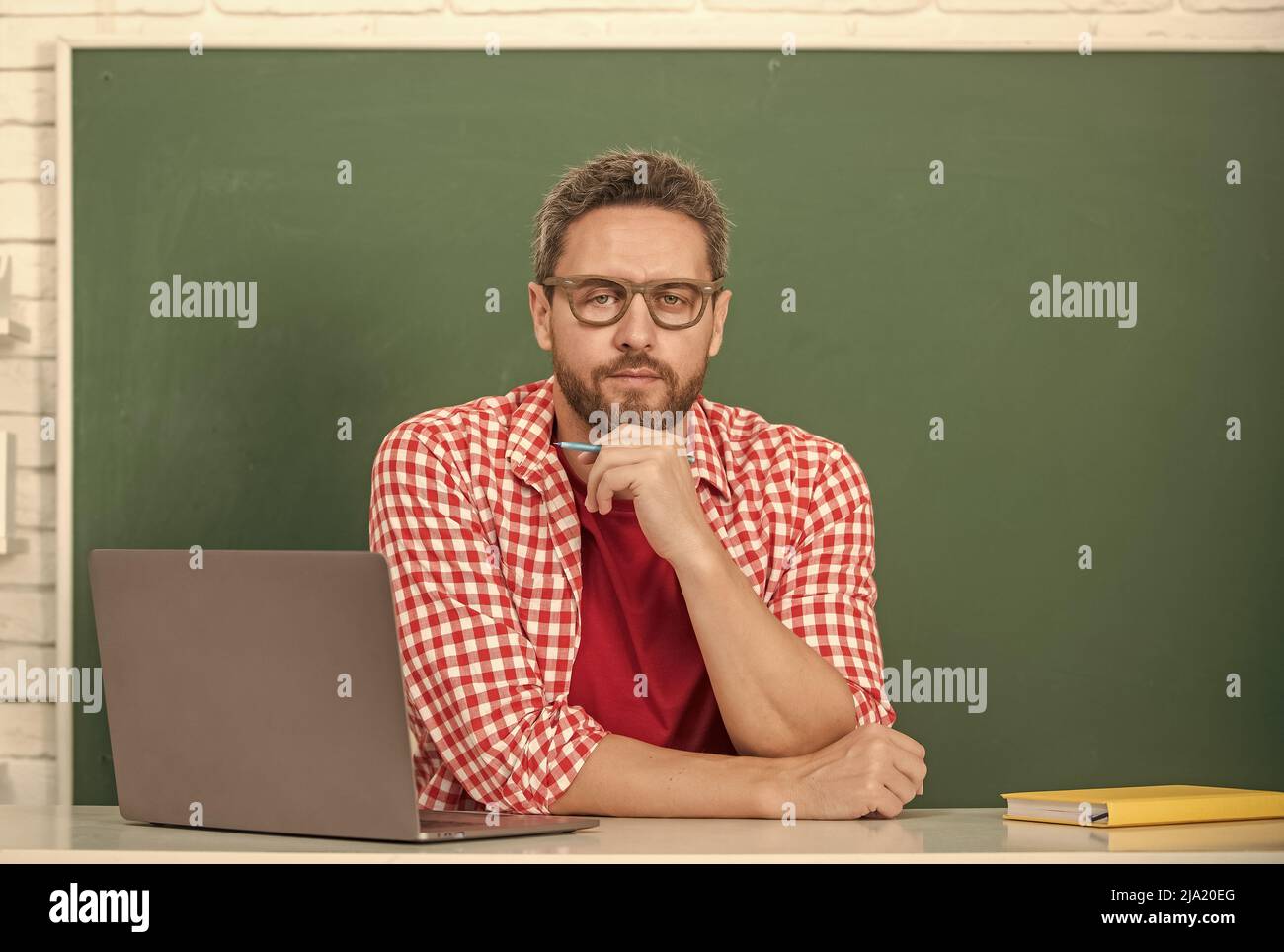 teachers day tutor man in glasses with laptopstudent study