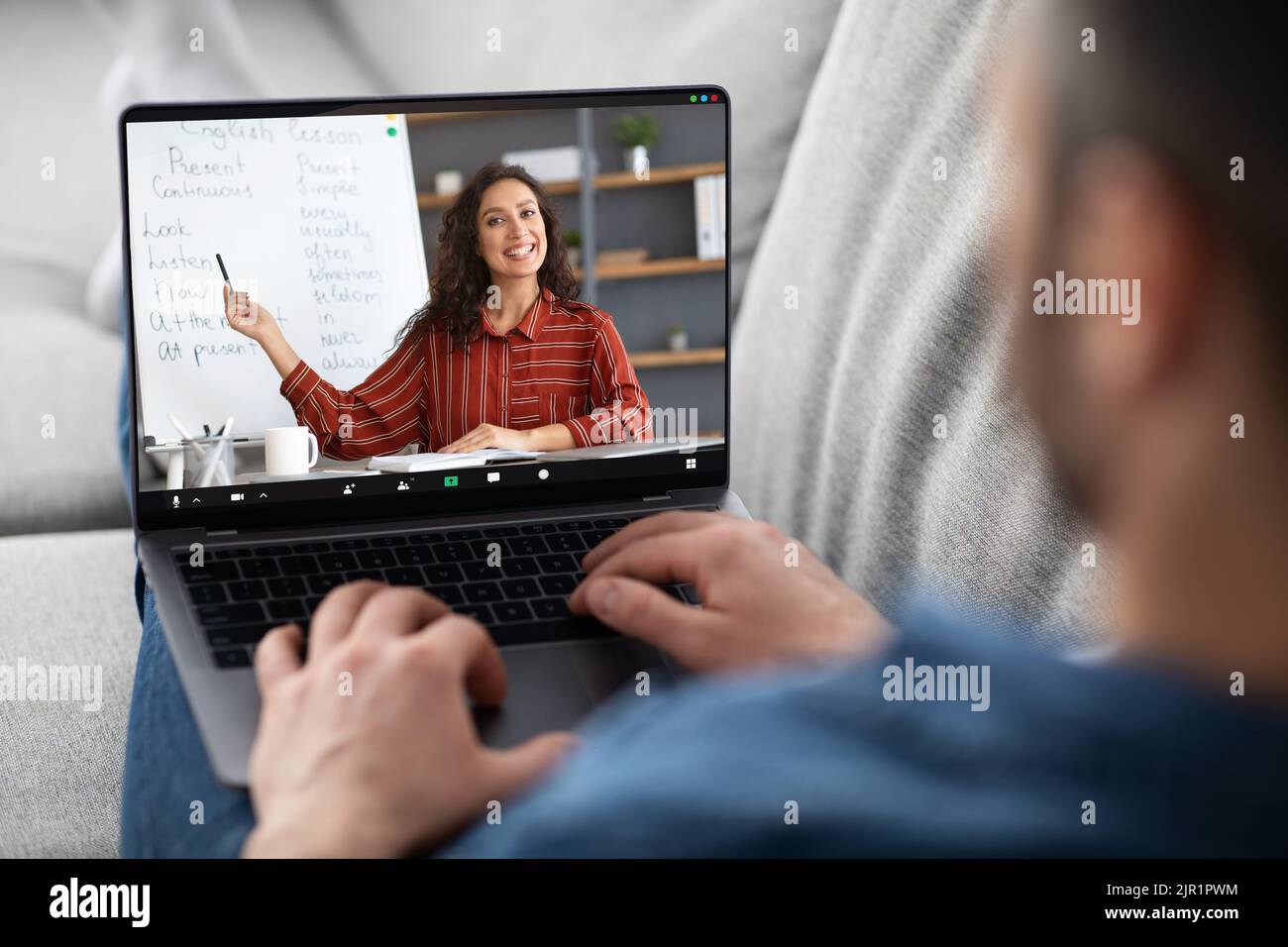 Online Tutoring Concept Man Having Virtual Lesson With Female English