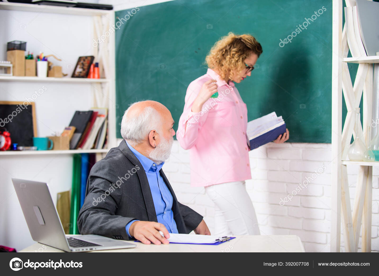 No Way Senior Teacher and Woman at School Lesson Student Girl with