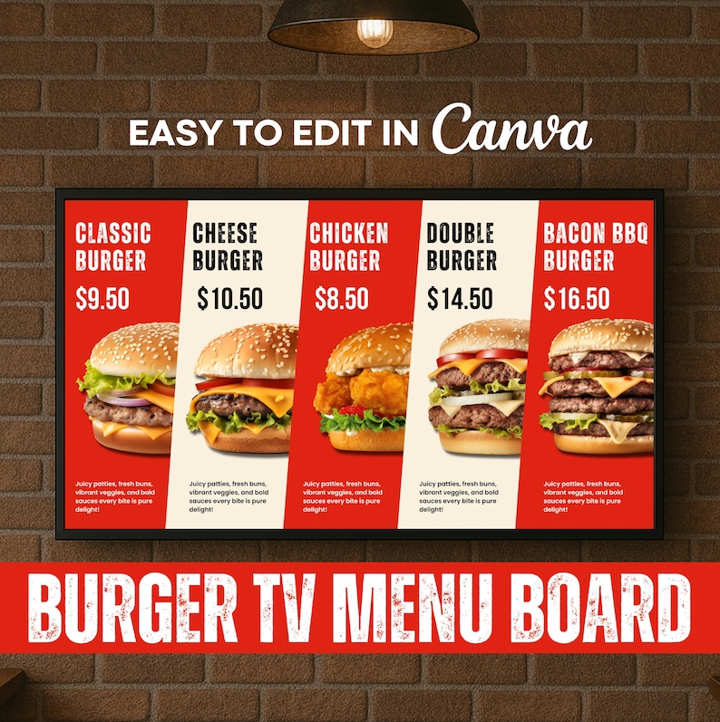 4K Burger Restaurant TV Menu Board: Animated Canva Template Etsy in