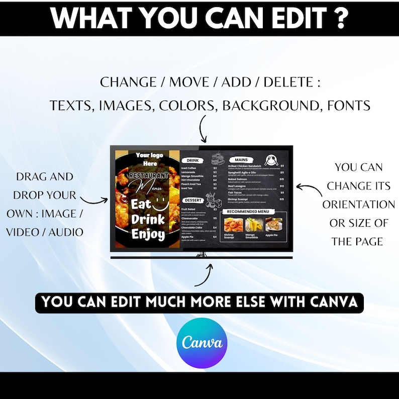 Restaurant TV Menu Board Template: Editable Canva Design (digital