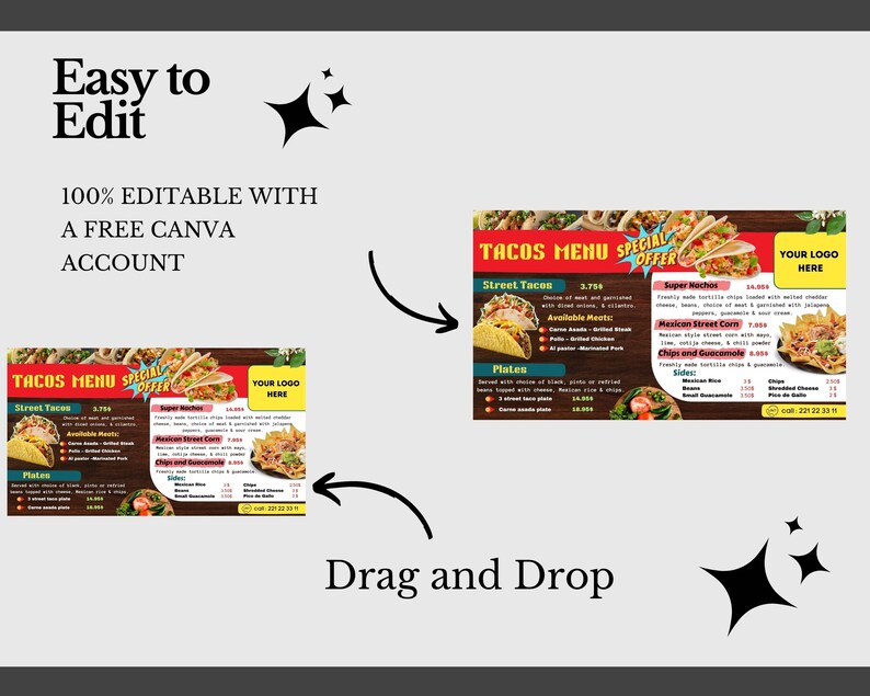 Restaurant TV Menu Board Template: Editable Canva Design Etsy