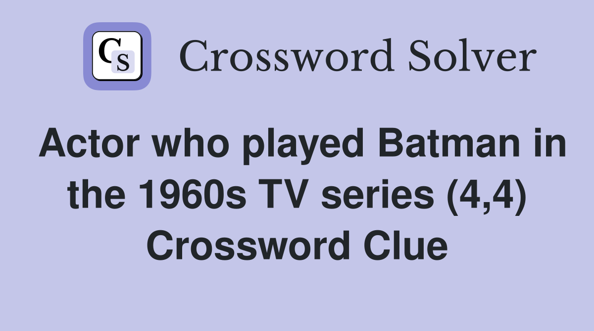 Actor who played Batman in the 1960s TV series (4 4) Crossword Clue