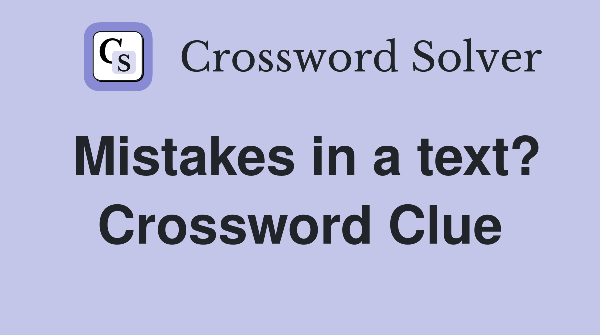 Mistakes in a text? Crossword Clue Answers Crossword Solver