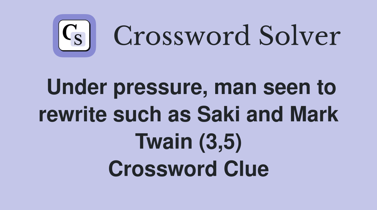 Under pressure man seen to rewrite such as Saki and Mark Twain (3 5