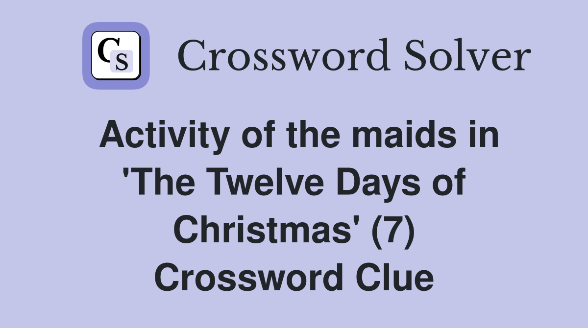 Activity of the maids in #39 The Twelve Days of Christmas #39 (7) Crossword