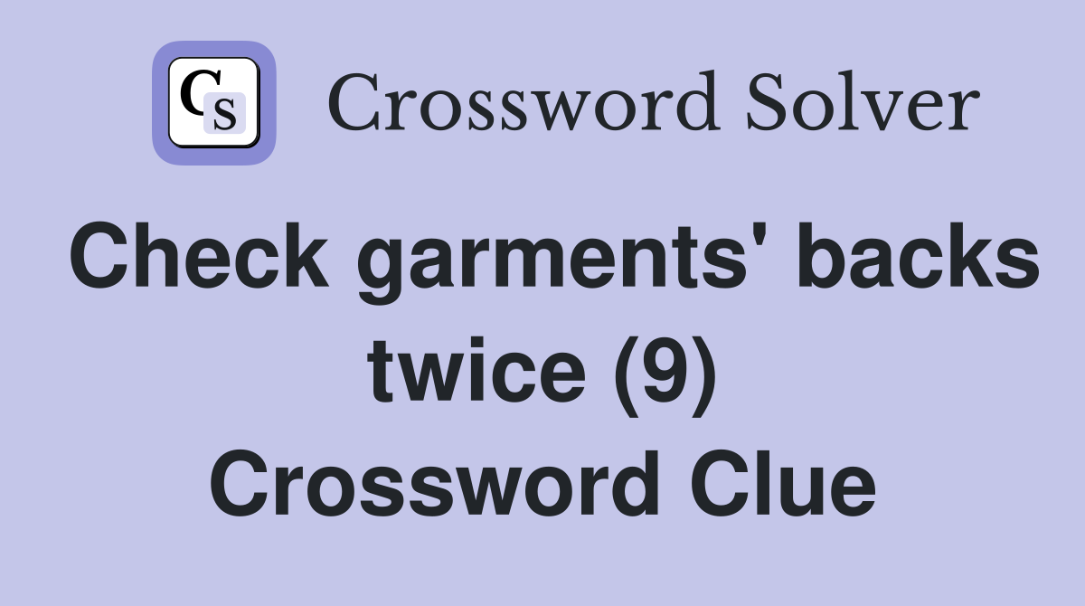 Check garments backs twice (9) Crossword Clue Answers Crossword Solver