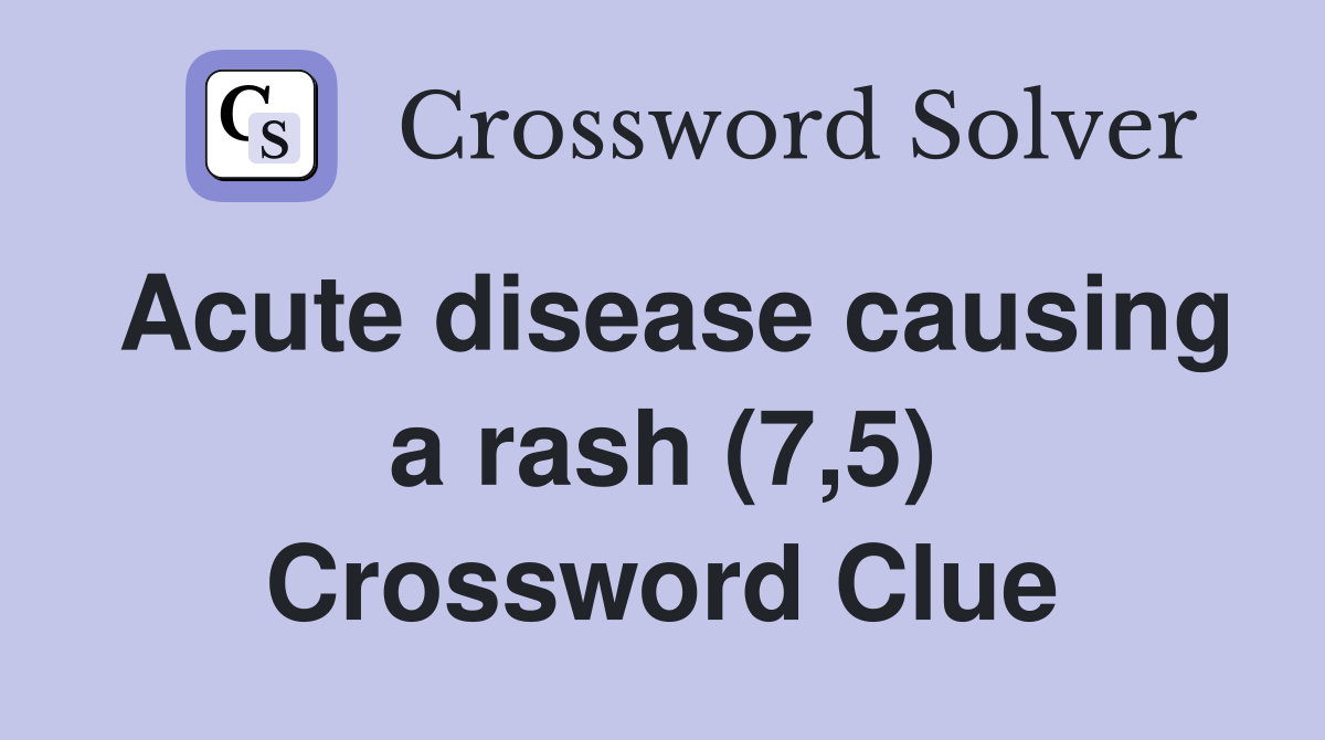 Acute disease causing a rash (7 5) Crossword Clue Answers Crossword