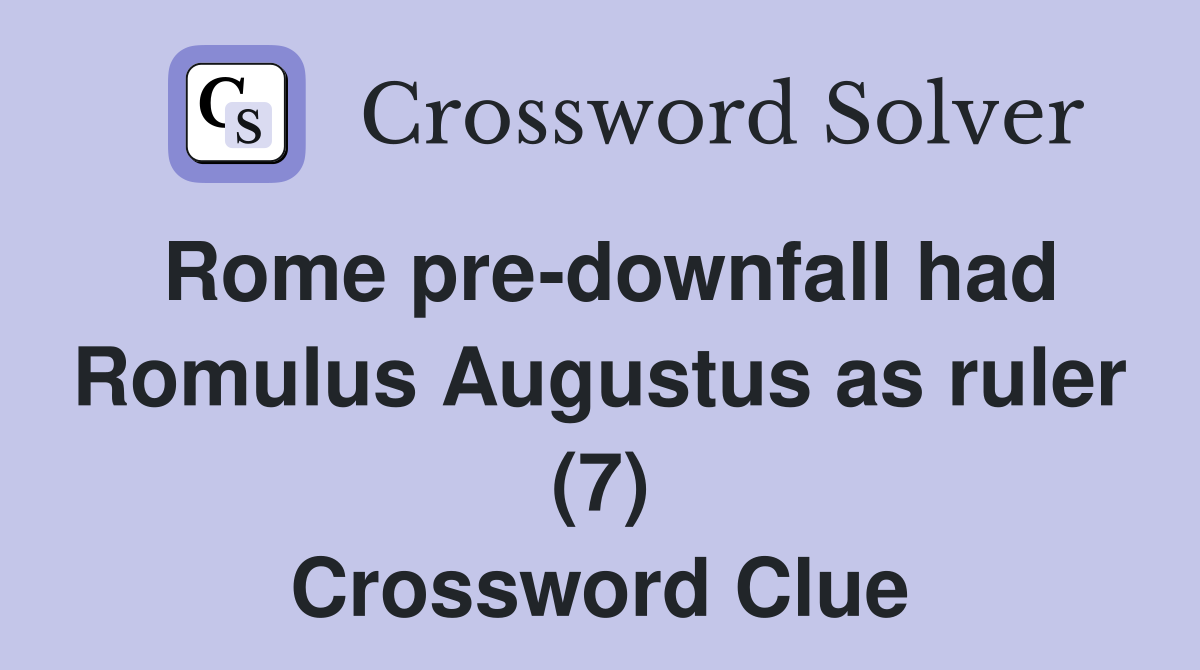 Rome pre downfall had Romulus Augustus as ruler (7) Crossword Clue