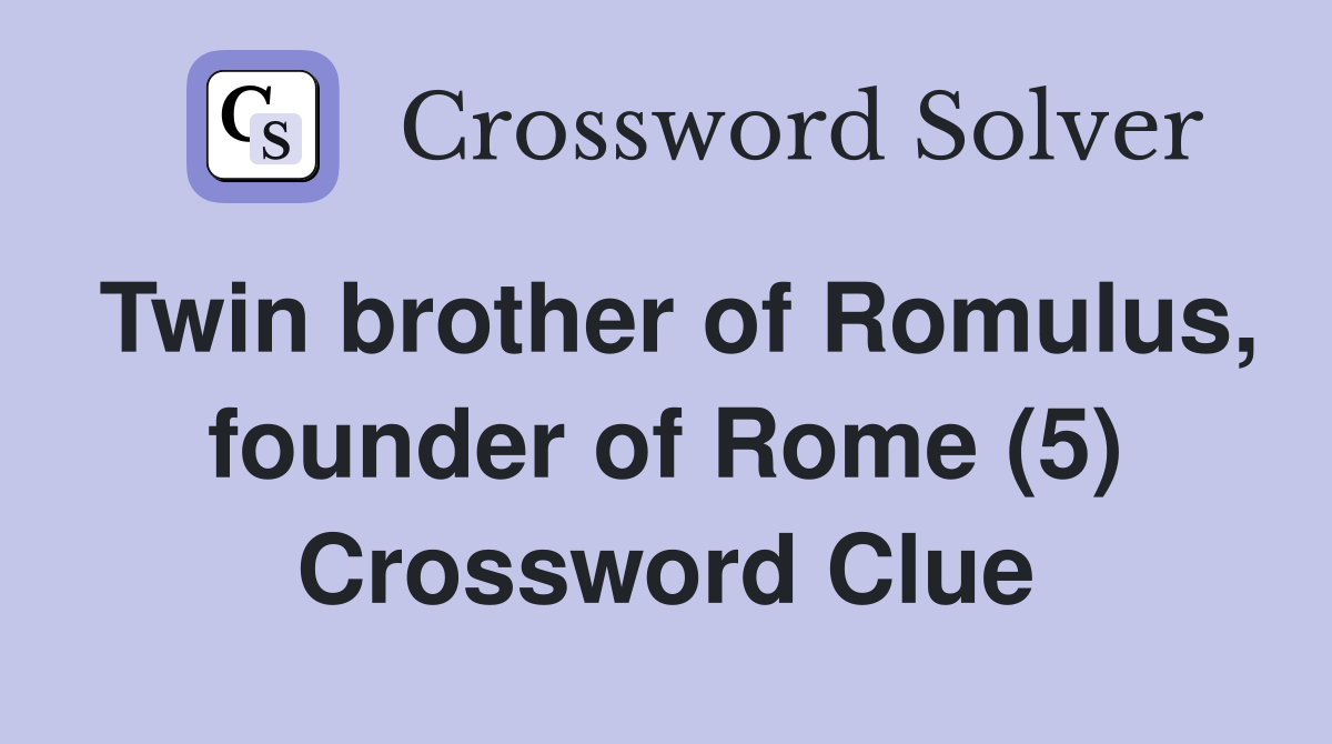 Twin brother of Romulus founder of Rome (5) Crossword Clue Answers