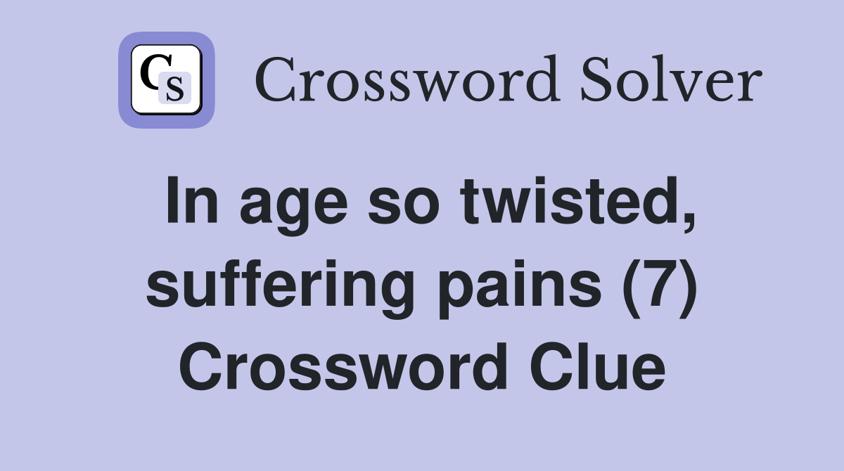 In age so twisted suffering pains (7) Crossword Clue Answers