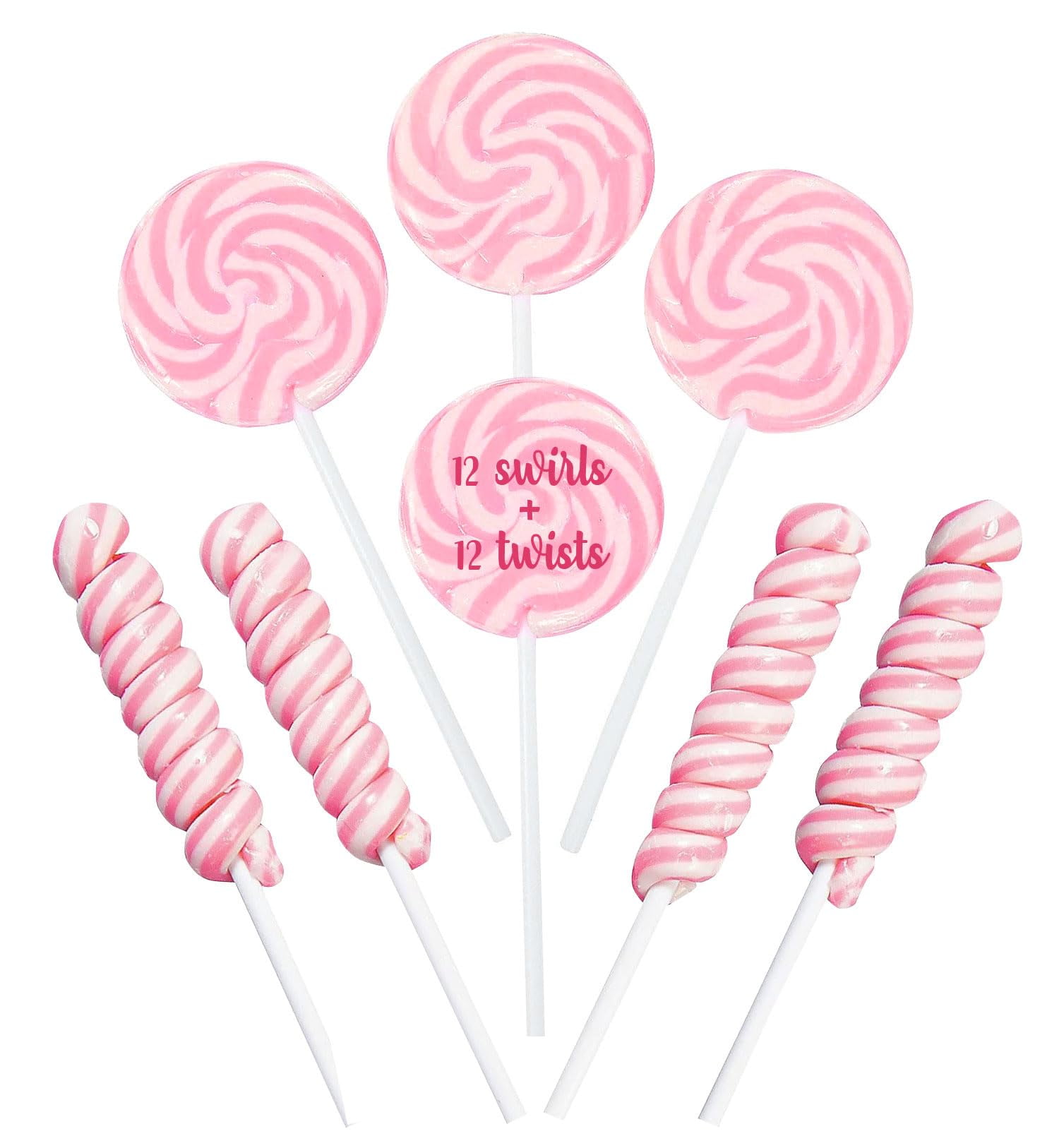 Pink Candy 12 BCF26 Swirl And 12 Twisty Lollipops PACK 24 Suckers