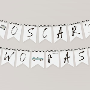 EDITABLE Two Fast Banner Birthday Racecar Party Racing Car Vintage