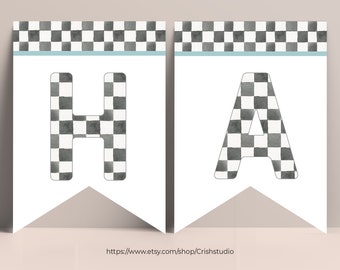 Two Fast Race Car Banner Printable L Blue Checkered Flag L Etsy