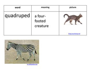 root word Ped=foot Matching pairs