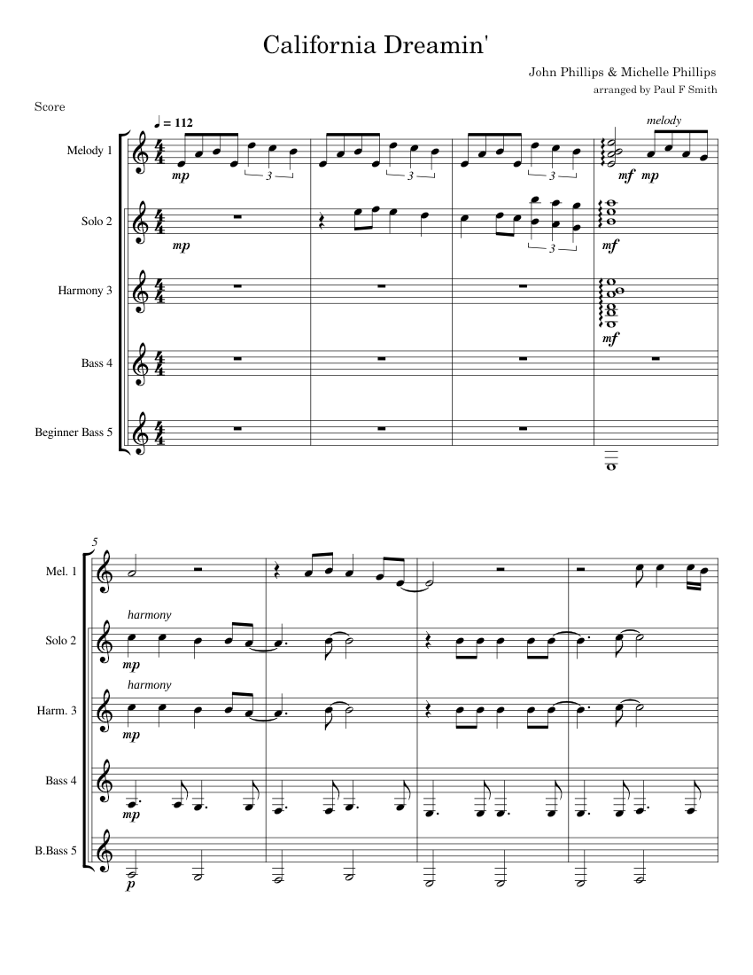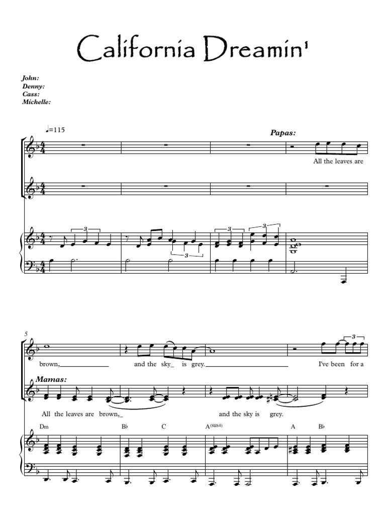 California Dreamin #39 Sheet music for Piano (Mixed Quartet) Musescore com