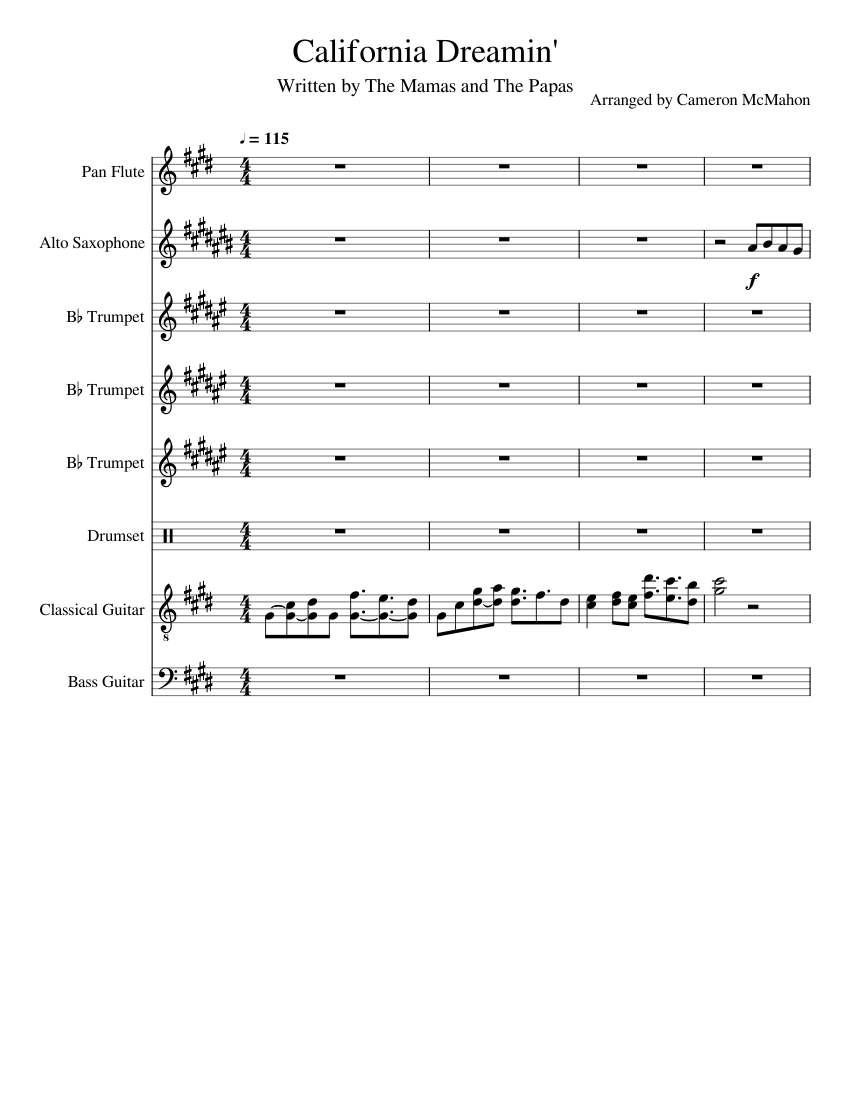 California Dreamin #39 Alto Sax and Trumpet Quartet Sheet music for