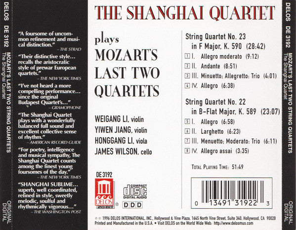 MOZART: The Last Two Quartets Shanghai Quartet ClassicSelect World