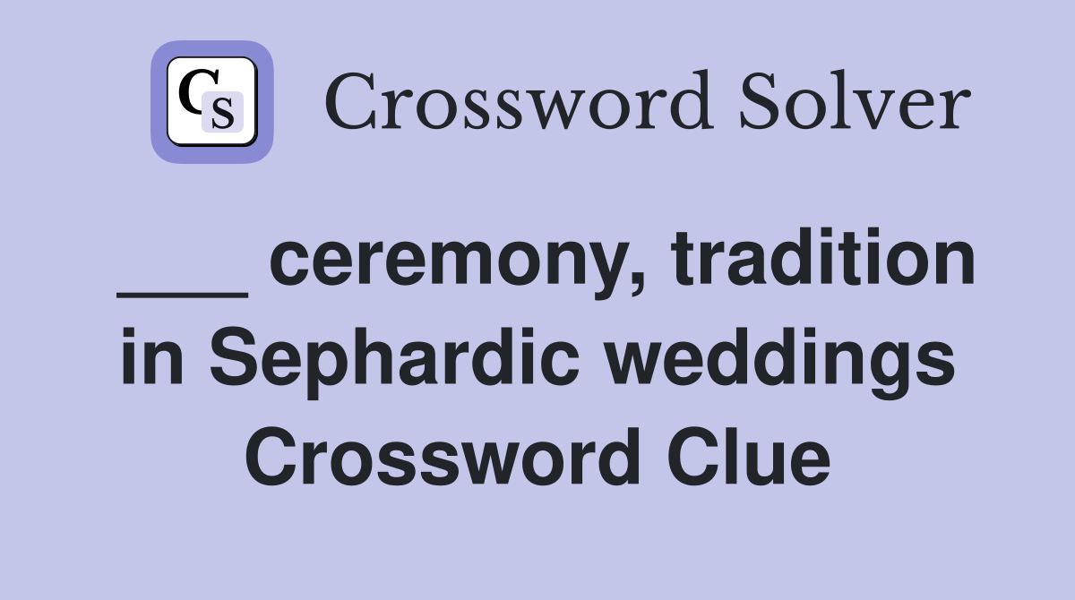 ceremony tradition in Sephardic weddings Crossword Clue Answers