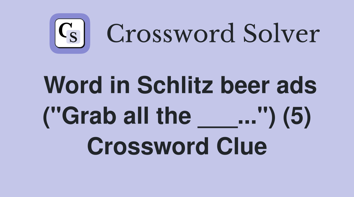 Word in Schlitz beer ads ( quot Grab all the quot ) (5) Crossword Clue