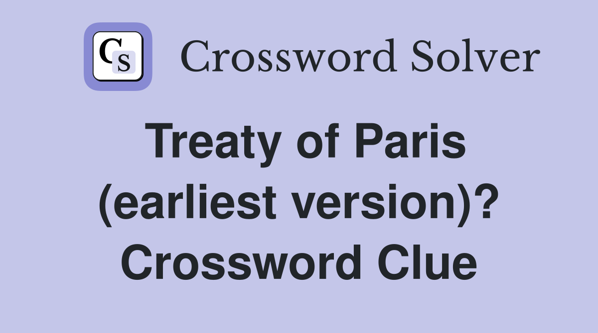 Treaty of Paris (earliest version)? Crossword Clue Answers