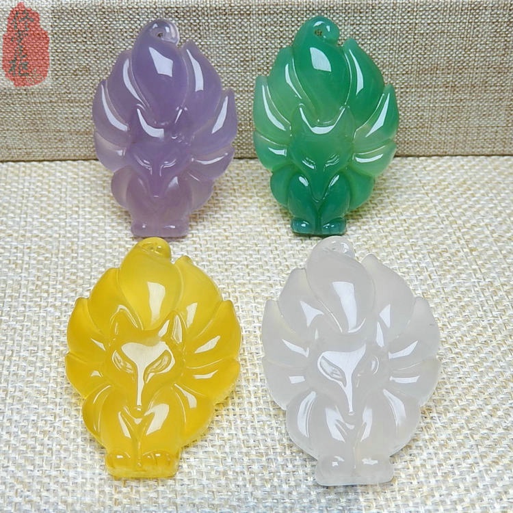 Natural Ice Type Chalcedony Nine Tailed Fox Pendant Fashion Jewelry