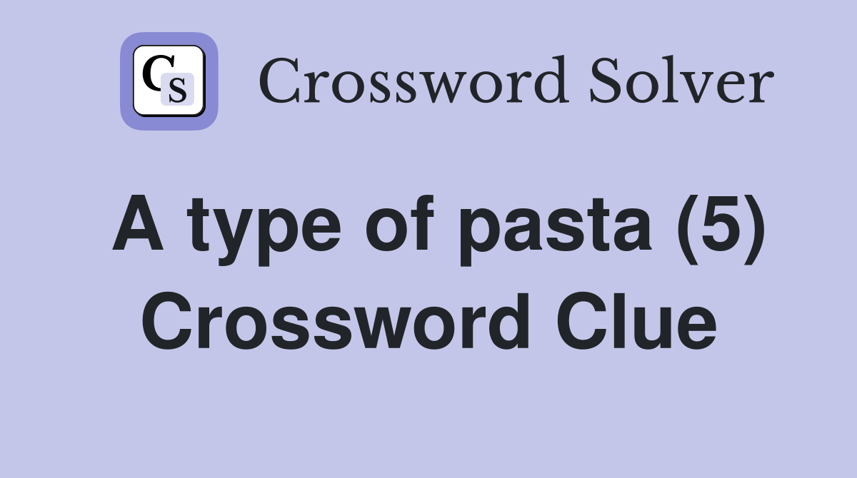 A type of pasta (5) Crossword Clue Answers Crossword Solver