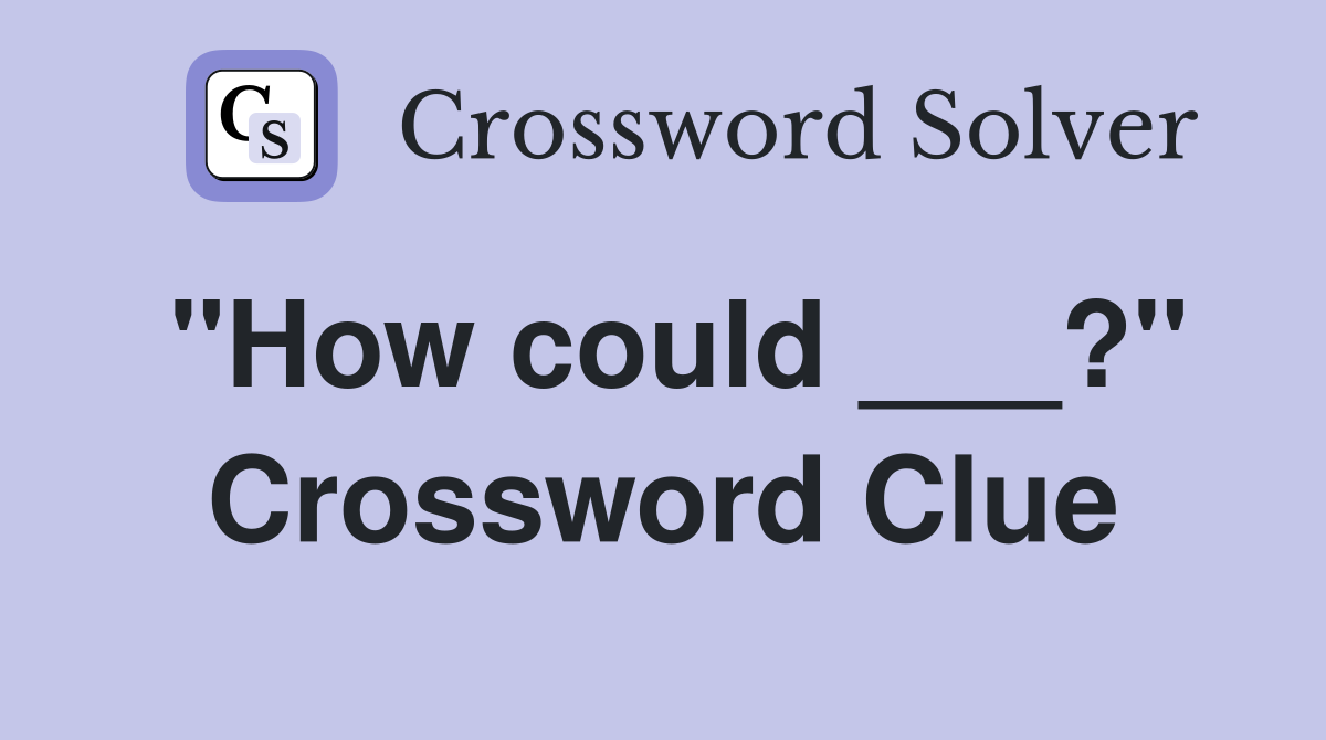 quot How could ? quot Crossword Clue Answers Crossword Solver