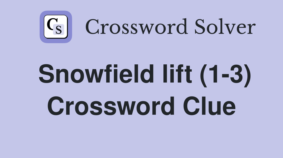 Snowfield lift (1 3) Crossword Clue Answers Crossword Solver