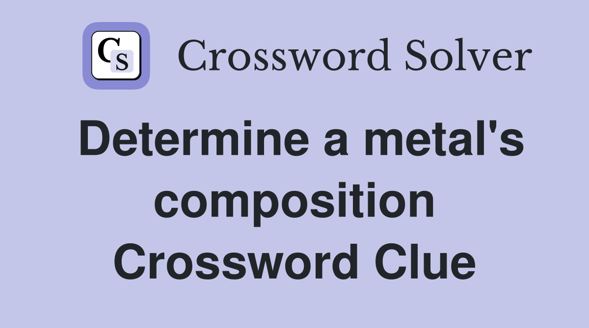 Determine a metal #39 s composition Crossword Clue Answers Crossword Solver